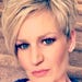 Long purple hair with bangs.